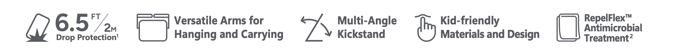 Meet Orlando, the new tablet case built with kids in mind. The adjustable arms act as a kickstand and can even wrap around a headrest in the car for easy viewing. Made with kid-friendly EVA foam, Orlando features 6.5 feet drop protection and makes using the tablet easy and fun.