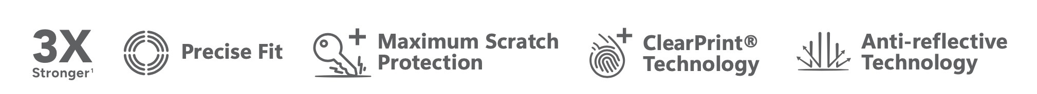 1 Tests conducted by a 3rd party independent lab; tested up to 3X stronger than traditional glass screen protection.
