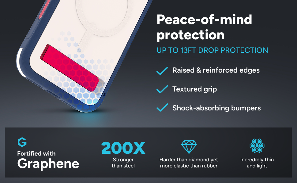 Elegance meets endurance in the multi-layer, stylish Sedona™ Snap case with kickstand. Sedona™ Snap has 13 feet drop protection, reinforced bumpers, kickstand, and a camera control button, plus it's MagSafe-compatible.