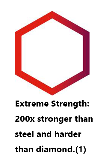 Graphene is an arrangement of carbon atoms in a hexagonal pattern resulting in a lightweight, flexible, and incredibly strong material.